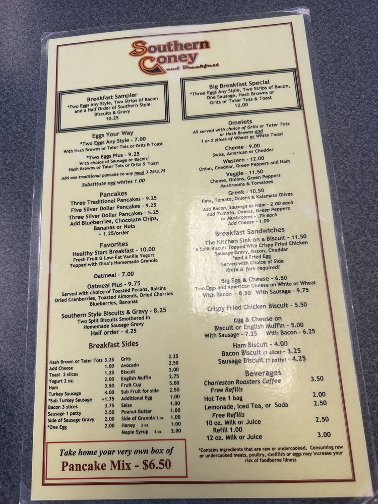 Introducing Southern Coney and Breakfast, a Southern-American restaurant offering a variety of breakfast and brunch options. Located at 70 Pope Ave Ste J Hilton Head Island, SC 29928, this restaurant provides takeout, delivery, and reservation options, making it convenient for all diners. With a focus on vegetarian options and wheelchair accessibility, Southern Coney and Breakfast caters to a diverse range of guests. The menu boasts favorites like the Healthy Start Breakfast with fresh fruits and low-fat vanilla yogurt, as well as traditional options like pancakes and oatmeal. Don't miss the delicious breakfast sides like hash browns and cheesy grits. The restaurant also offers amenities like free Wi-Fi, outdoor seating, and a drive-thru option, ensuring a comfortable dining experience for all. Visit Southern Coney and Breakfast for a hearty and satisfying meal that will leave you coming back for more.